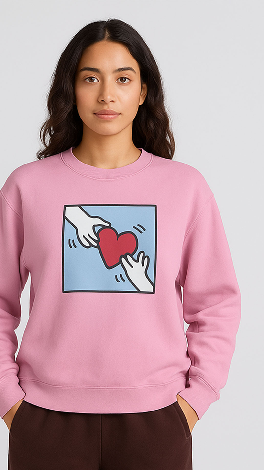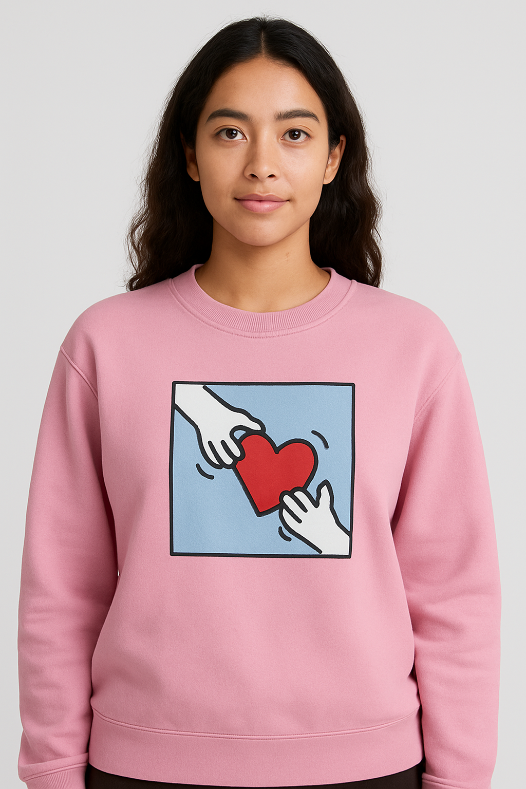 Add a pop of color and fun to your girl’s wardrobe with this America Today pink graphic sweatshirt. Designed in a soft fleece fabric, it offers a cozy feel that’s perfect for school, outings, or casual wear. The adorable heart-hand artwork on the front adds a sweet, artistic touch — making it a standout piece. With its relaxed fit, ribbed cuffs, and classic crew neckline, it blends comfort with style effortlessly.